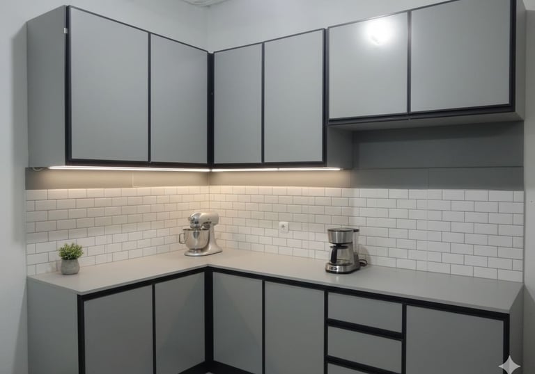 Memasak kini lebih mudah dengan se,mua peralatan tertata rapi di tempatnya, material tahan lembab dengan desain ergonomis.